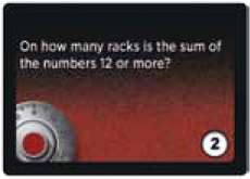 Randomly select a player to begin. The player who has been selected takes the top question card from the stack, reads it out loud and answers the question. The question is answered by reviewing the numbers that the player can see and not about the numbers on their own rack. Here are some example answers: