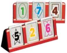 One point is awarded for a correct solution. A solu- tion only counts as correct if all three numbers have been guessed correctly. No points are scored for a wrong solution. In both cases the tiles are taken out of the player's rack, placed out of play, and are then replaced by three new ones, naturally with- out letting the player see the new numbers.