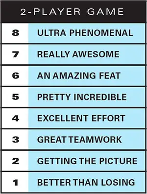 If you would like to keep score, count the number of rival cards not yet placed when you win, and refer to the chart below: