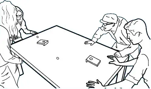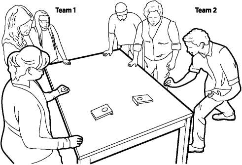 Choose a player to go first on each team and give those players a board and a coin each. The first two players should be directly across from each other.