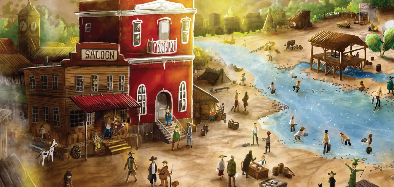 In the game of Coloma, you are a pioneer who has recently traveled out West to strike it rich and make a name for yourself. You will prospect for gold and use your windfalls to recruit workers, rustle up horses, and establish businesses.