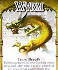 When you activate the Wyrm's special power, you may discard any one visible combat or spectator card from any other creature in the current combat row. Any card revealed through this ability's use is now the top card for that creature. Once you pick up a card to discard it, you cannot change your mind.