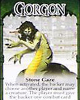 When you activate the Gorgon's special power, you may pick any one other player and name a creature that has not yet been eliminated. That player must give you one combat card depicting that creature if he has one.