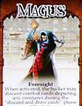 When you activate the Magus's special power, it does not take effect until phase 3 of your turn. However, during phase 3 of your turn, you may discard combat cards depicting surviving creatures as well as those depicting creatures that have been eliminated.