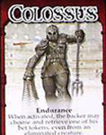 When you activate the Colossus' special power, you may choose and retrieve one of your bet tokens as though you had never bet it in the first place. You may even retrieve tokens that were placed on creatures that were eliminated! If you retrieve a bet token attached to your secret bet, discard the attached strength card.