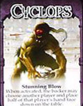 When you activate the Cyclops' special power, you may choose another player. Randomly draw half (rounded up) of that player's cards from his hand and set them face down in front of him without looking at them.