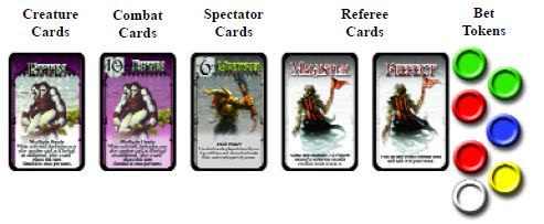 Each player has 5 bets that he can make over the course of the game. These are represented by his 5 bet tokens. At the end of the game, a bet pays out if it is placed on a creature that has made it through all 5 rounds of combat.