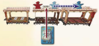 Then, move the targeted Bandit to the same floor of an adjacent Car (either forwards or backwards, your choice in most of the Cars; backwards if you are in the Engine and forwards if you are in the Caboose).