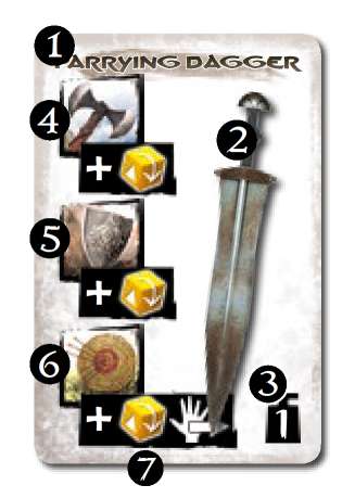 Some weapons can be used for Melee and Ranged Attacks. They have a icon next to their Ranged Attack bonus. Once a weapon is used for its Ranged Attack bonus, its card is placed in the defender's area. It needs to be picked up (by performing a simple Manipulation) before it can be used again.