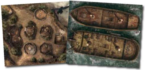 Each game board is double-sided and represents a battlefield for the heroes and the Overlord. Each board is divided into areas in which the models operate. Each scenario indicates which game board to use.