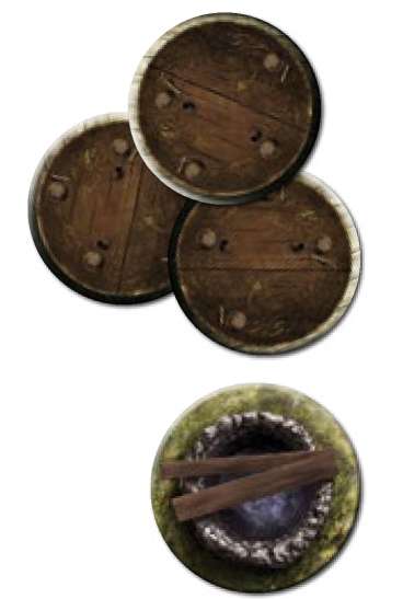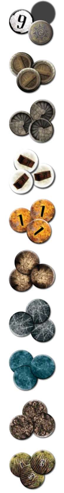 These tokens are placed on the board as specified by the scenario to indicate the areas in which there is a chest. Remove the token from the board once the chest is open.