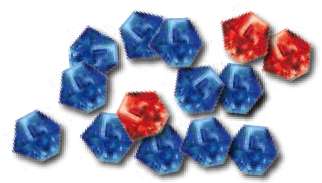 Gems are used to determine how much energy is available to the heroes (blue gems) and the Overlord (red gems). Each gem represents one unit of energy.