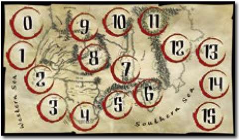 Numbered from 0 to 15, it is used to keep track of the number of turns played in a scenario as well as the number of life points for the Overlord's main characters. In specific scenarios, the turn track might have additional uses.