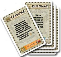 All played cards form a personal discard pile showing only the last card played. With the Tribune, a player takes back all cards previously played.