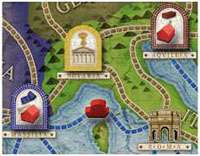 For a tighter 2 or 3 player game it is recommended to reduce the number of cities to 22 by omitting the cities marked with a "B". This way, the 3 Italian provinces do not take part. They may be easily covered by the separate card display.