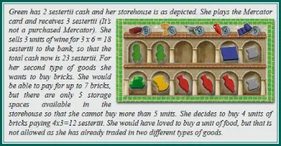 The player receives 3 sestertii out of the bank (or 5 sestertii with a purchased Mercator).