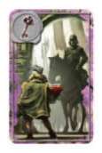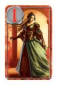 The Courtesan has a strength of 1 but is not considered a Mercenary card (and is therefore not affected by Winter, Spring, Drummer, or Scarecrow cards). Note that the Courtesan card has a red rather than an orange border and that its strength value appears on a silver seal rather than a shield.