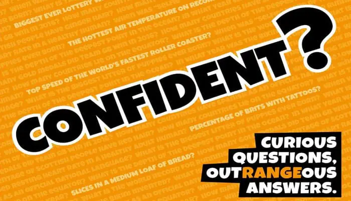 You all write your ranges at the same time, then reveal! Win points if the right answer is in your range. The most confident player with the smallest range wins the most.