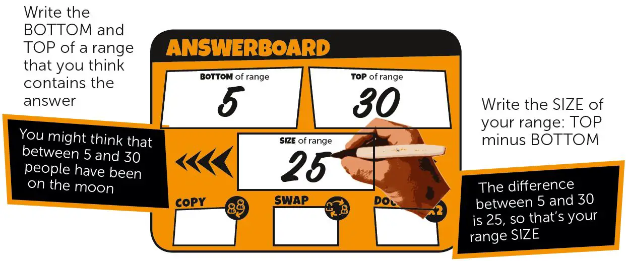 Think someone else knows better? Don't give a range, write their name in the copy box. After the reveal, copy their range to win points as if you'd come up with it