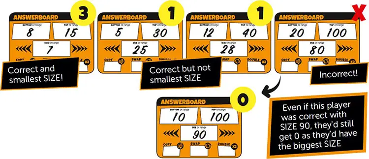 - If multiple or all players are correct with the same SIZE, they all get 3