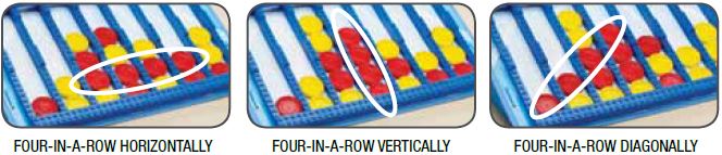 Be the first player to get four of your colored checkers in a row - horizontally, vertically or diagonally.