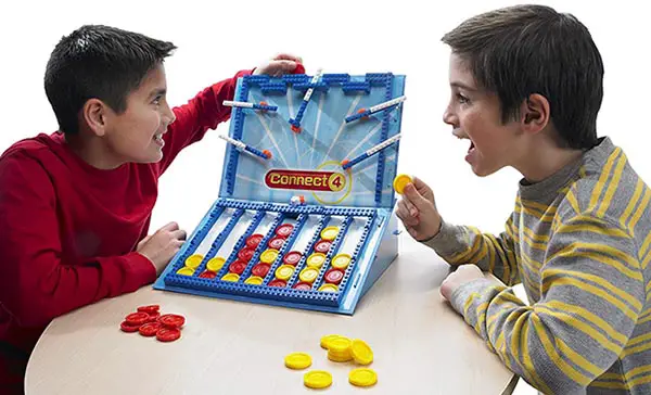 If you're the first player to get four of your checkers in a row you win the game! If there's a tie, rematch!