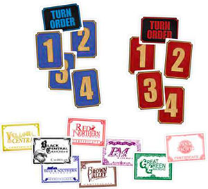 Two different sets of Turn Order cards are provided to facilitate this determination. One set will be in use showing the existing player order, with the cards face up in front of the players. The second deck will be used to show the new player order.