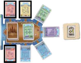 Note: If the player has more than 7 cards in their hand after the action "A) Take cards", they must discard any surplus cards first before proceeding with the action "B) Construct facade".