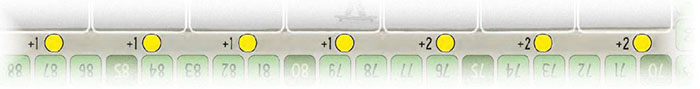 The cards from the fifth to the eighth space increase in cost by one coin each, and the cards from the ninth to the eleventh space increase in cost by two coins each, as shown below the respective space on the game board.