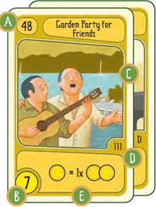 E The action box below the picture shows the action of the card. The color indicates, which type of action this card offers and therefore the phase, in which the action can be used.