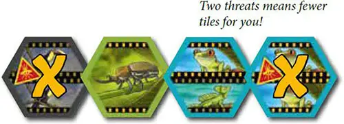 When you choose a tile, flip it over. It will show one or two animals, and it may show a threat.