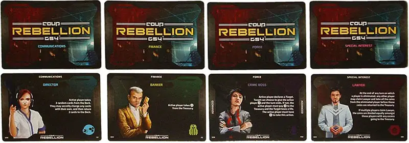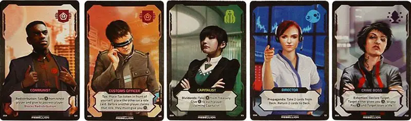 These are the only roles that will be in play for the game. Only include advanced roles if all players are experienced at the game. For your first game we suggest using: Banker, Politician, Guerrilla, Director and Peacekeeper.