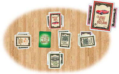 Also, if you run out of cards in your hand, the assets in your stack are still vulnerable to be stolen! The final few cards you play can drastically swing the balance of fortunes among players, so play those last cards wisely!