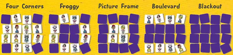 For younger players, give each player S cards (instead of 16) and arrange the cards face up in 3x3 squares. The first player to flip three cards in a row wins!