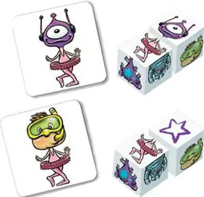 Each player with a card matching the head- and-body combination on the dice flips the card over. If you have more than one match, choose one card to flip.