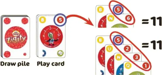 Use the number on the play card AND the numbers on any of your cards to add to 11.