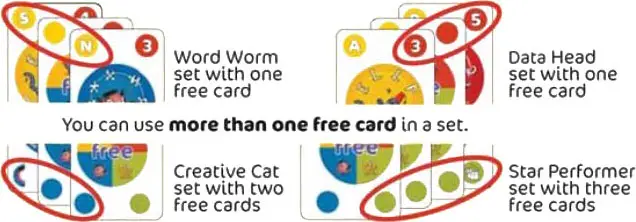 - If the new play card is a free card, turn over cards until a set card is showing.