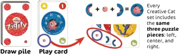 Use the puzzle piece on the play card AND the puzzle pieces on any of your cards to complete the puzzle.