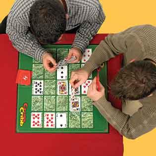 Try to make sure every card you lay down is working toward bettering one of your own rows and blocking one of your opponent's columns. In the examples below, you are playing columns, your opponent is playing rows.