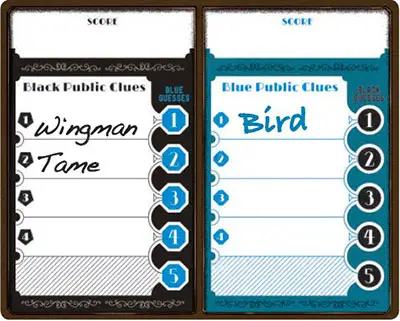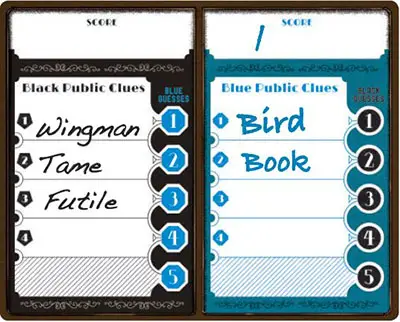Both clue-givers start by secretly writing down a one-word private clue on the Private Clue Board and passing it face-down to their teammates.