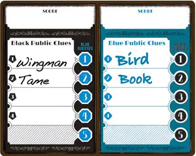 Both clue-givers write a private clue on their Private Clue Boards and pass them to their teammates, who examine them while keeping them hidden from their opponents.