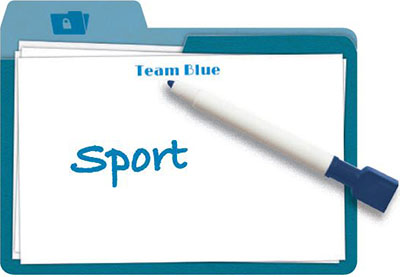 Team Blue's clue-giver decides to use her Hint Board. They indicate the following: