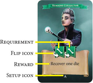 Each Collector defines the reward for one of the six Treasure types. By collecting the required number of Treasure cards you can gain bonus Coins at game end or special actions during play Multiple players can receive the same reward from a Collector.
