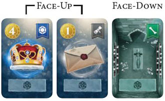 Regardless of dice results, collect all Treasure cards that your Servants claimed. Face-down Treasure is only revealed to the player that collected it.