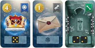 Claim Treasure cards by placing Servant dice on them. Placing higher values may ward off opponents but can leave your Servants exhausted.