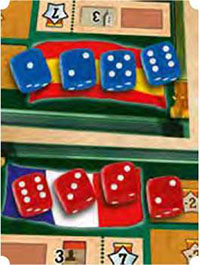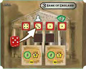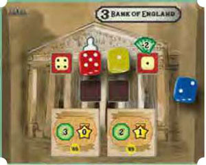 Choose your dice values carefully: high values are powerful, but if you choose too high, possibly over several rounds, you will quickly realize how scarce money is in this game; maybe you will even fall into a loan trap.