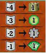 Now you must pay back your loans and exchange your leftover energy, Gears, and newspaper into 1 pound each. Exchange every 10 pounds you have left into a 10-pound note and place it onto a free research space on your player mat (if there is one).