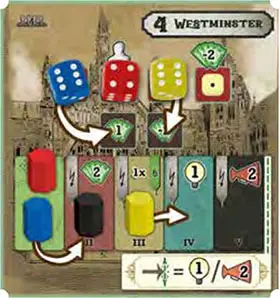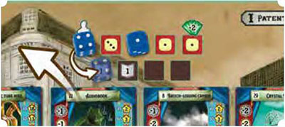 It is possible though that more dice are placed on a Location board than actions are available. High dice values will help you put your plans into action. In phase 3, you then perform the respective actions with your dice.