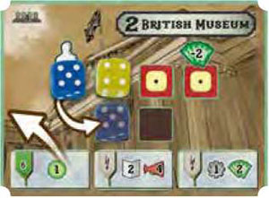 Remove the leftover Research tiles on the British Museum from the game. Refill the British Museum with new Research tiles from the supply.