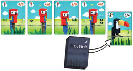 Next, the player slides the remaining Birds together, so that they form a continuous row.
